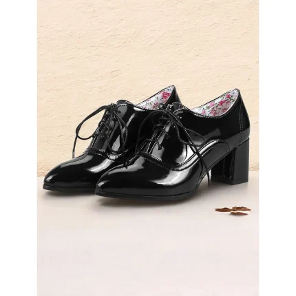 Women’s Classic Lace-Up Oxfords – Pointed Toe, Block Heel, Perfect for Office or Casual Wear