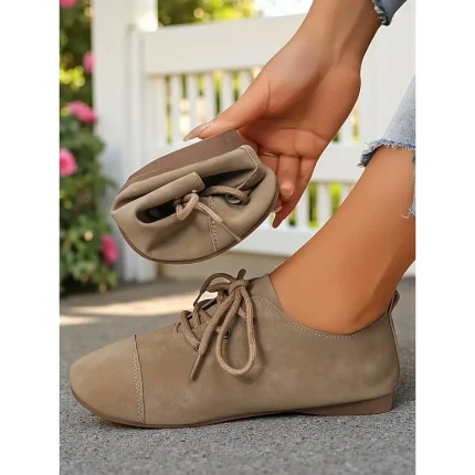 Women’s Wide Fit Lace-Up Shoes – Casual Faux Suede Comfortable Walking Shoes for Daily Wear and Travel