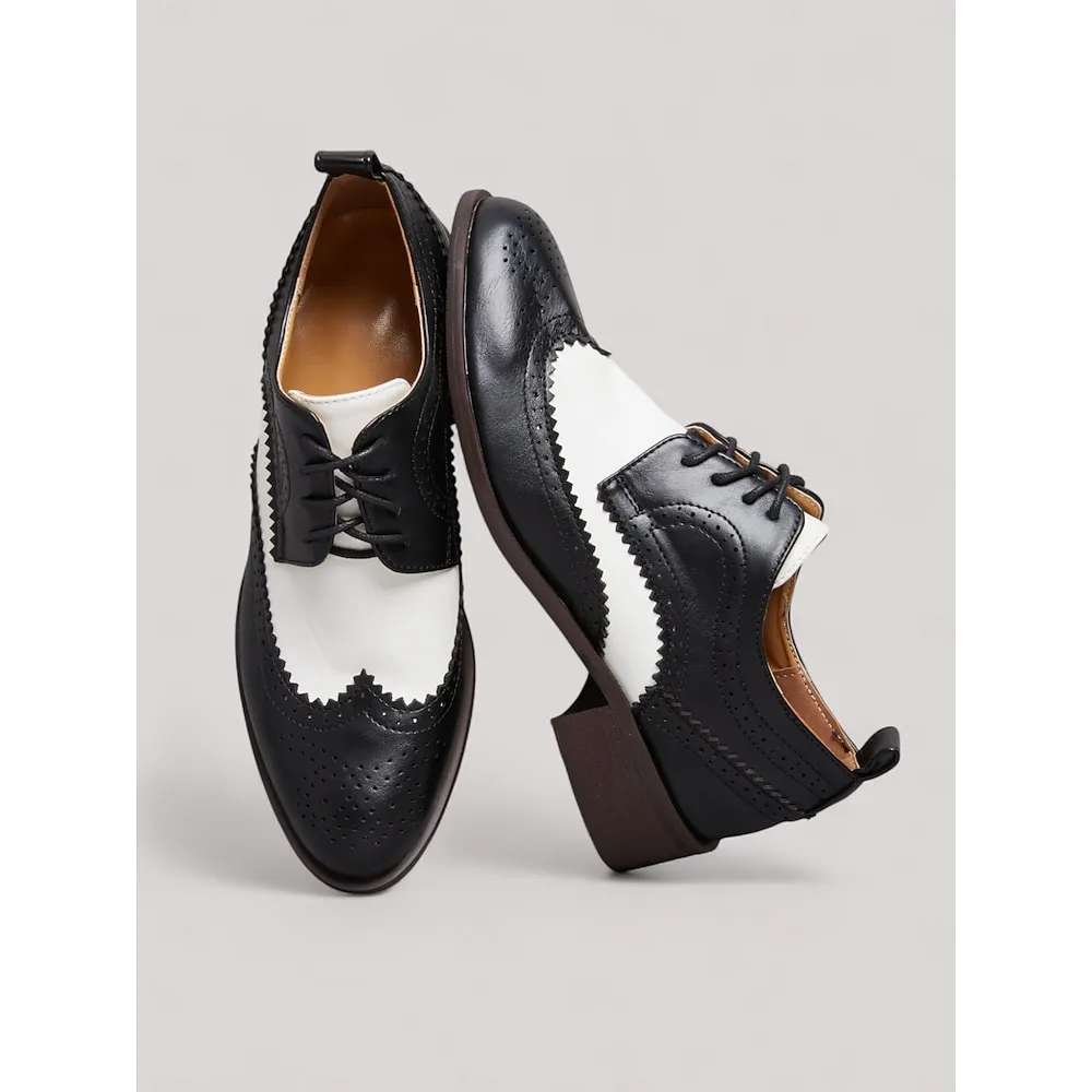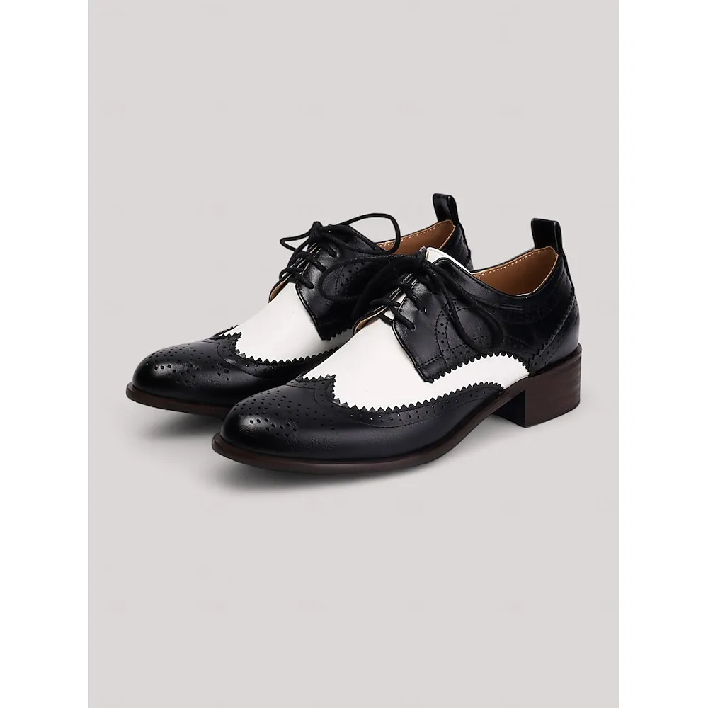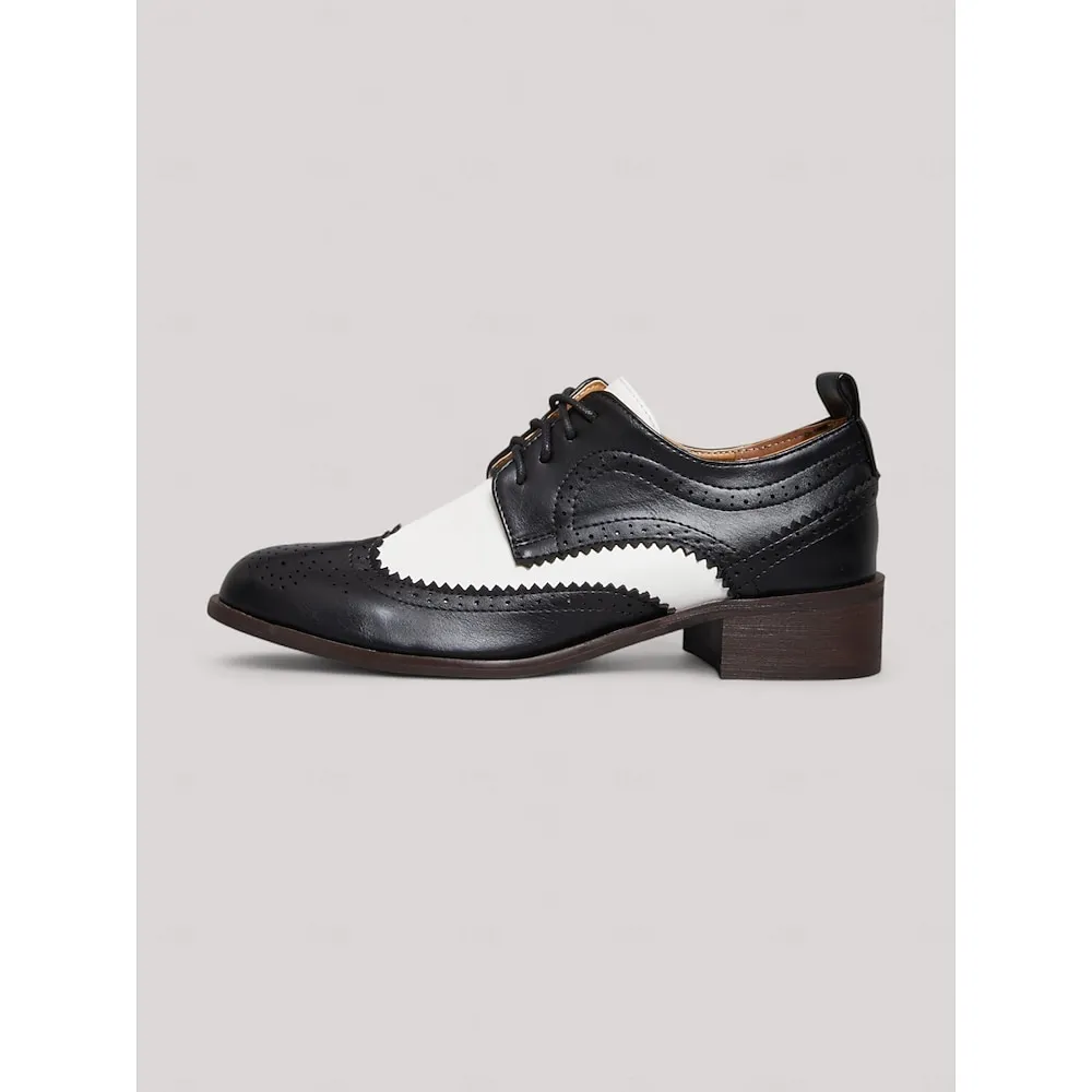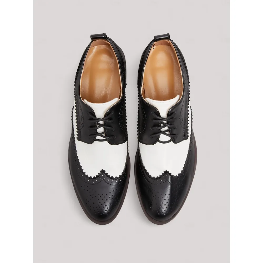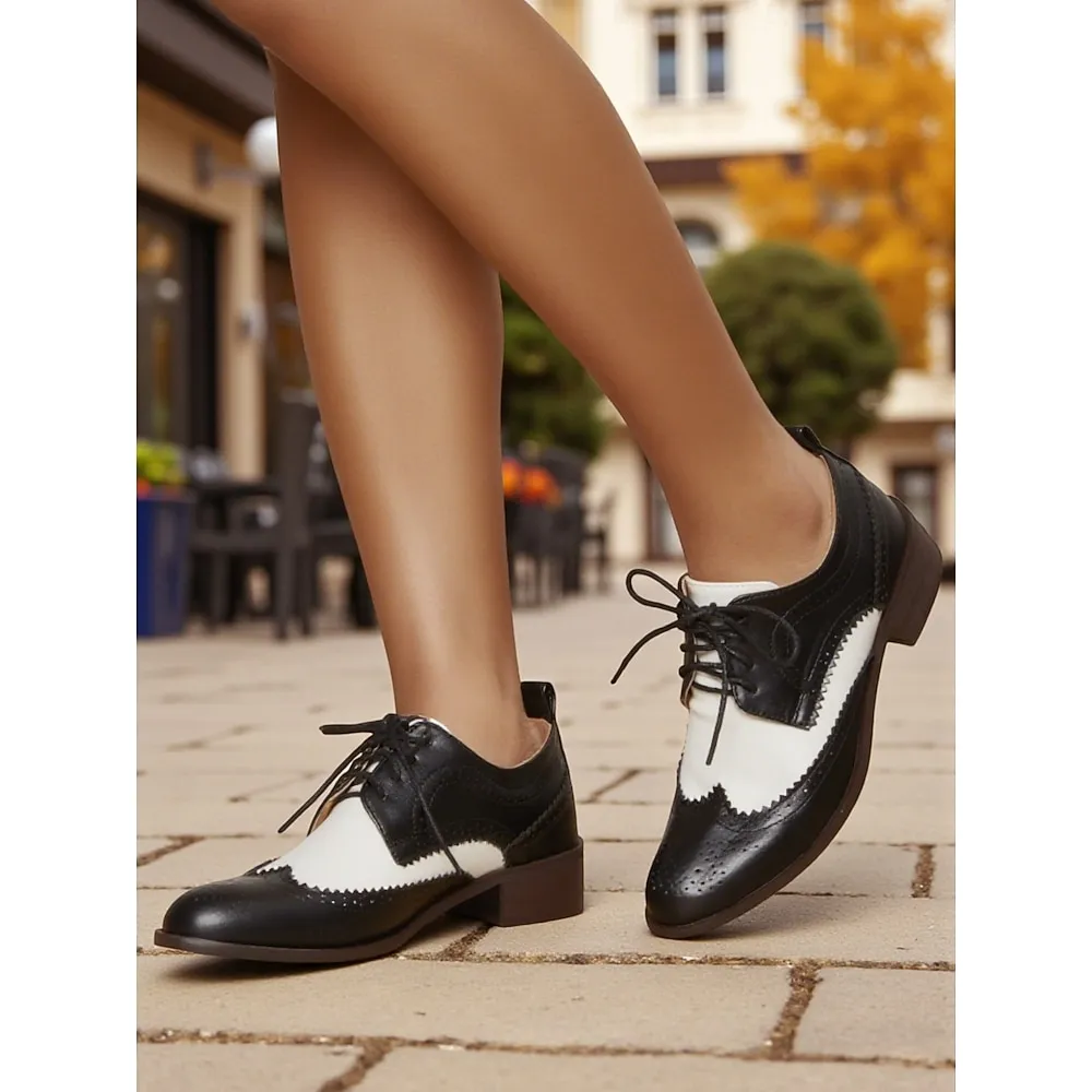 Women’s Black and White Wingtip Oxford Shoes – 1950s Vintage Brogue Lace-Up Leather Dress Shoes for Office, Casual Outings,and Retro-Inspired Fashion