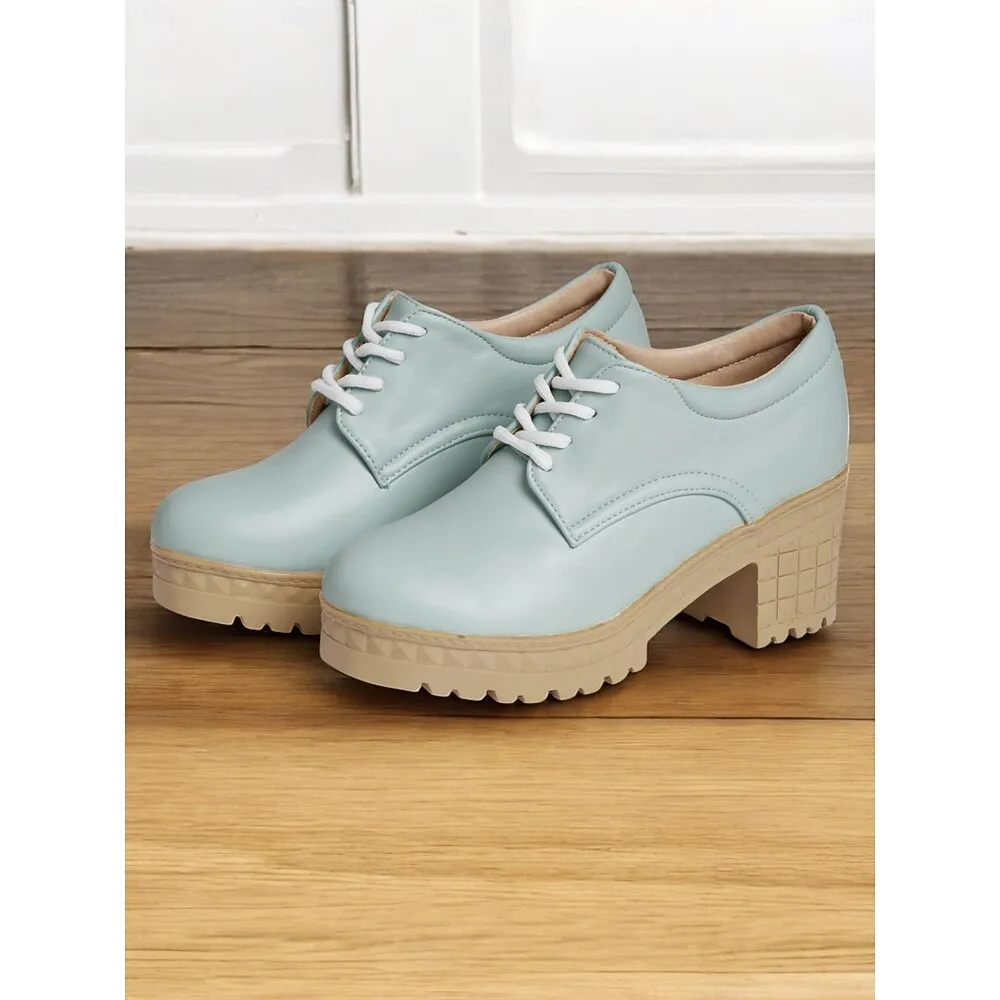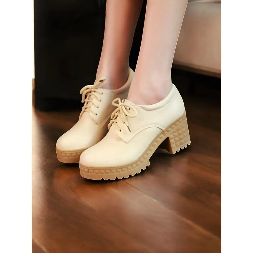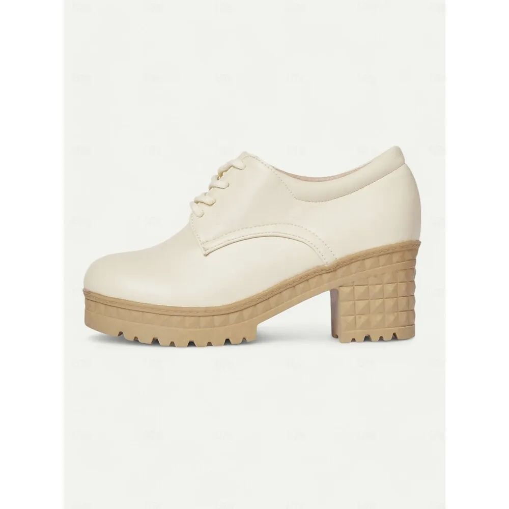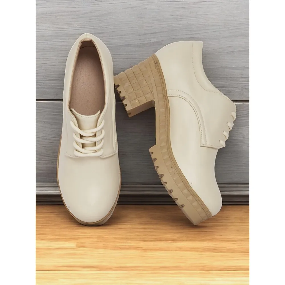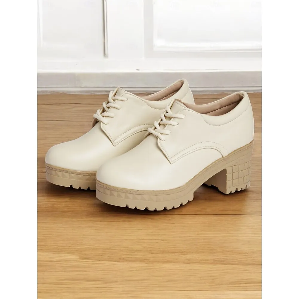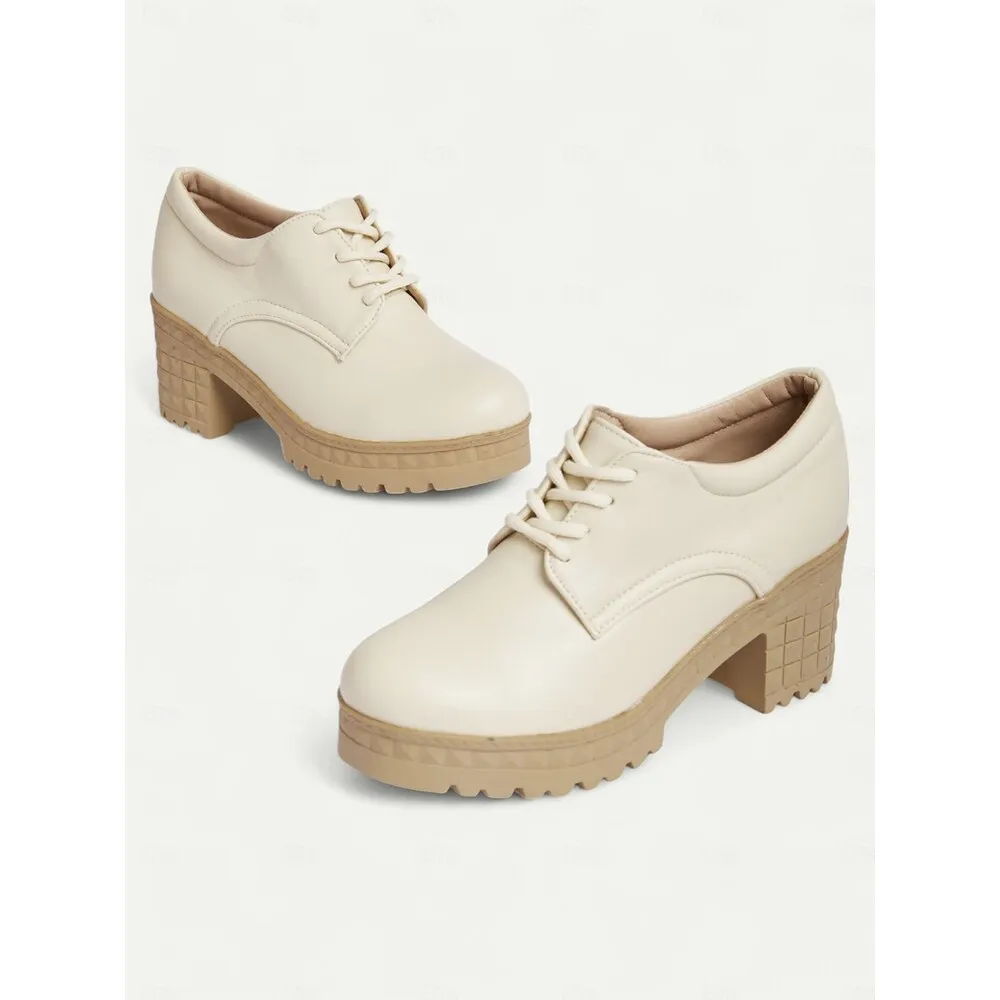 Women’s Ivory Lace-Up Platform Oxford Shoes – Chunky Heels with Textured Soles for Casual and Office Wear